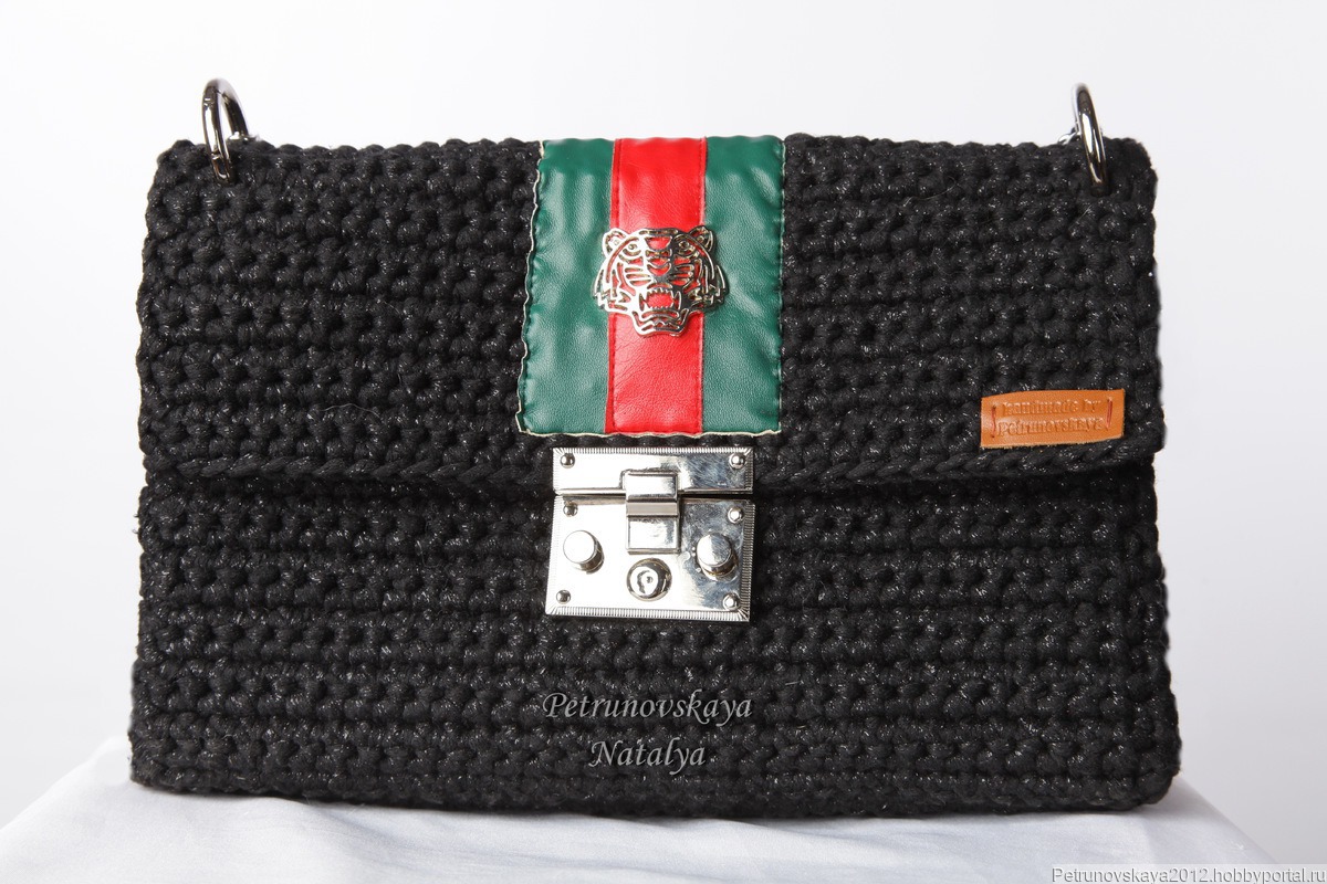 Вязаная сумочка "Gucci-2" из трикотажного люрексного шнура - весенне-летняя и очень модная!