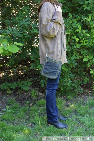 Полотно сумки вязаное, карман из джинсовой ткани.
