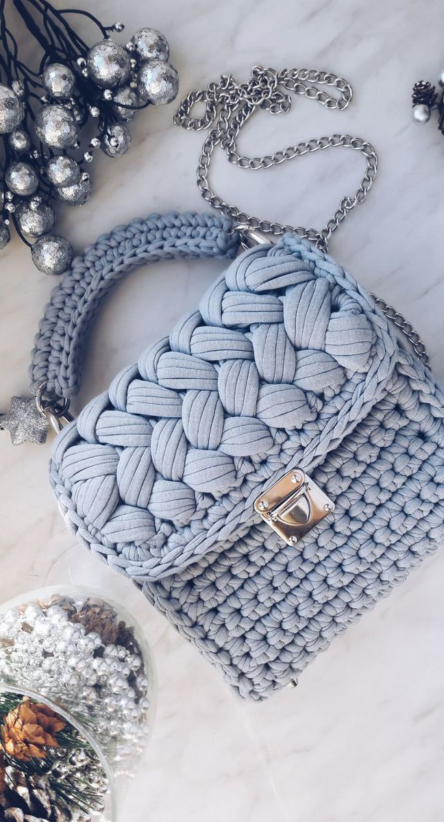Вязаная сумка цвета Грей из трикотажной пряжи. Фурнитура серебро