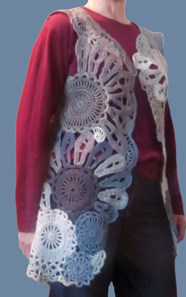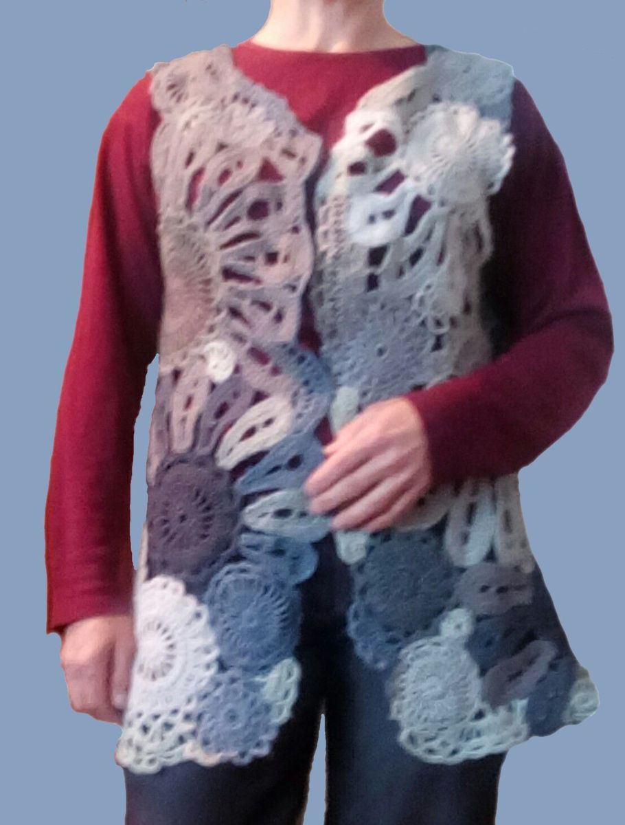 жилет, ирландское кружево, жилет вязаный, жилет женский, ирландское вязание, фриформ вязание, вязанная одежда, жилет фриформ