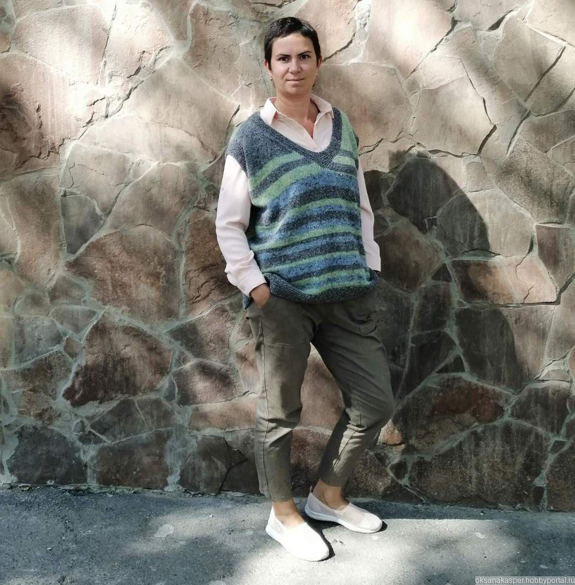 Натуральный состав согреет Вас в прохладное время года. Жилет оверсайз.