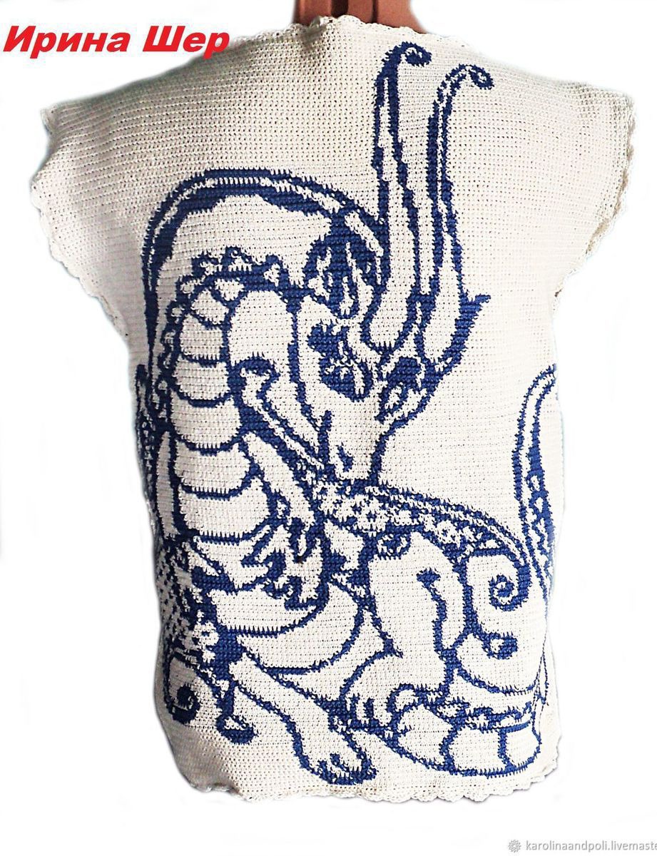 жилет, крючком, жилет вязаный, жилет женский, комбинированный, крючком на заказ, вязание крючком на заказ, жилет крючком, дракон, жилет с рисунком, с картинкой, дракоша, жилеты, жилет на заказ, с драконом