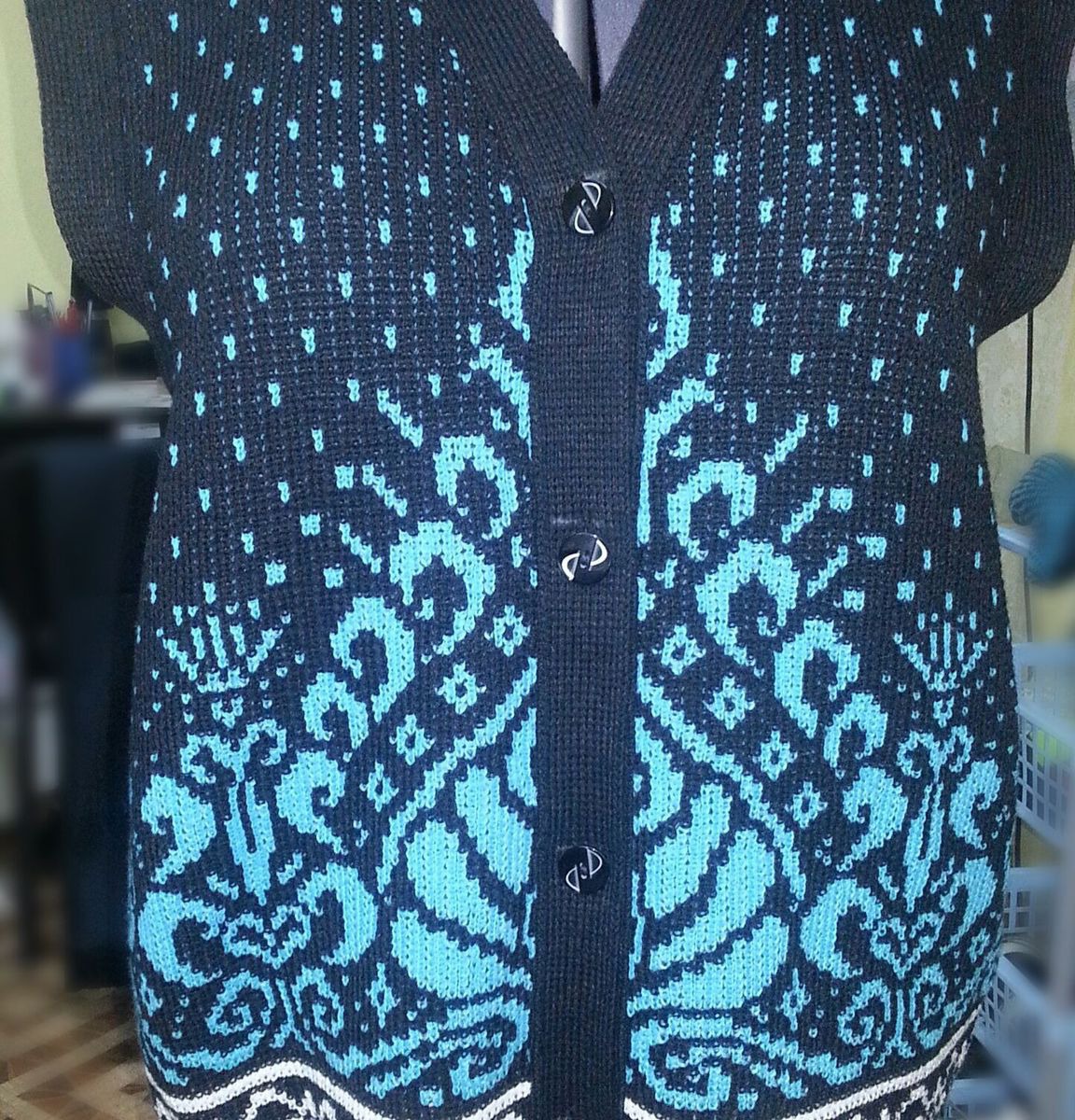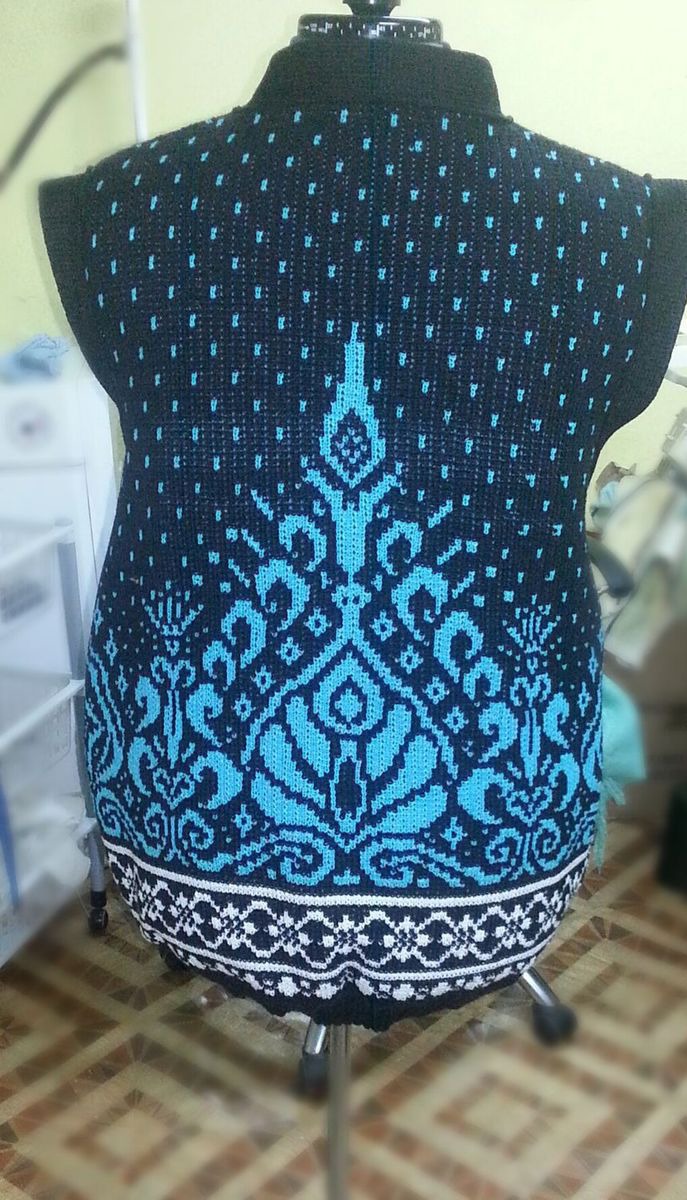 бирюзовый, жилет, синий, теплый, на пуговицах, шерстяной, Жаккардовый, С узором, Рисунком