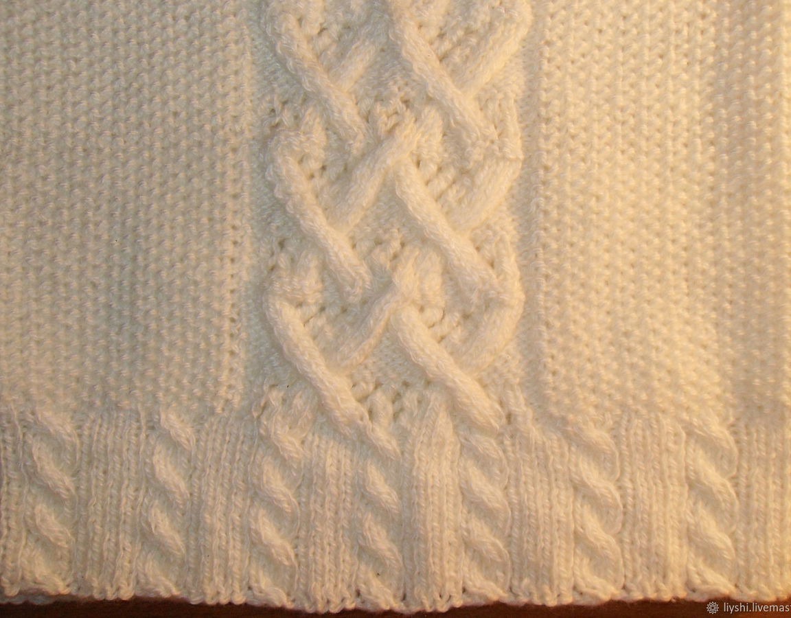 Белый жилет выполнен из очень мягкой полушерстяной пряжи, узором рис. Размер 42. Длина жилета 55 см