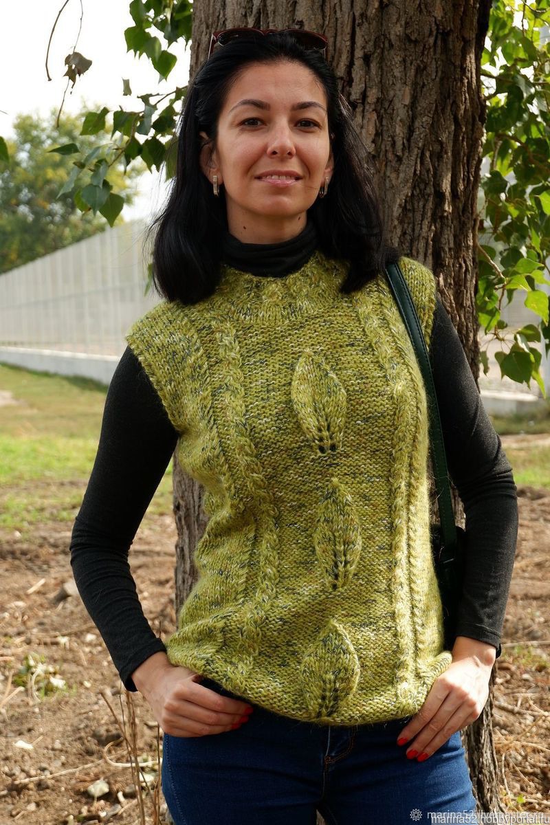 авторская работа, жилет вязаный, жилет спицами, осенняя мода, вязаный жилет, жилет теплый, молодежная мода, жилет женский купить