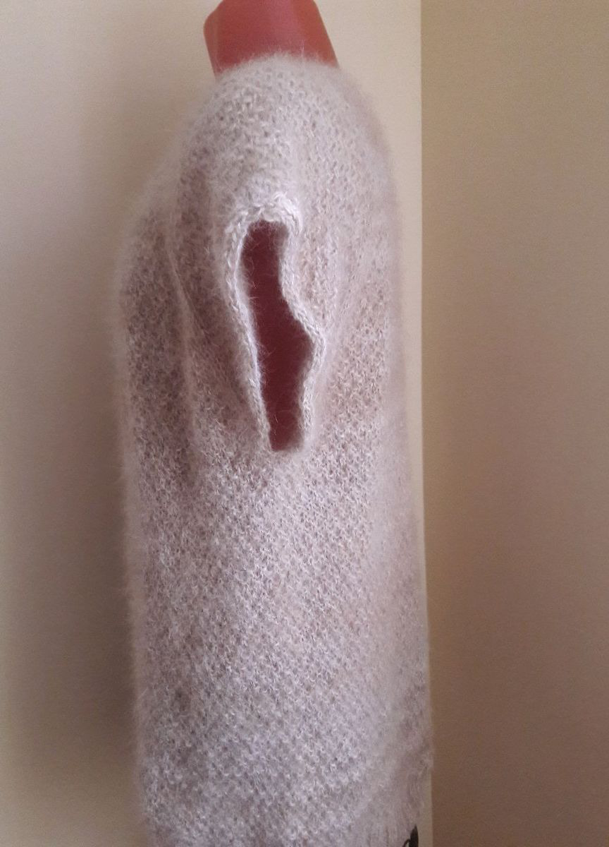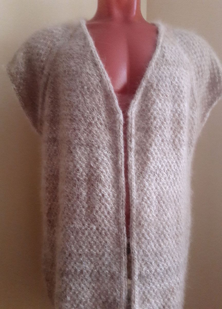 Безрукавка из собачьего пуха. Нежнейшая, невесомая, очень теплая, мягкая!!! Пока не распушилась, т.к. еще не носилась.Длина 73 см., обхват по бедрам 106 см. Ручная вязка, нить самопрядная.Цвет св.бежевый, не окрашена.Можно связать другого цвета. Спасет от холода в любую погоду. ВСЕ НАТУРАЛЬНОЕ!
