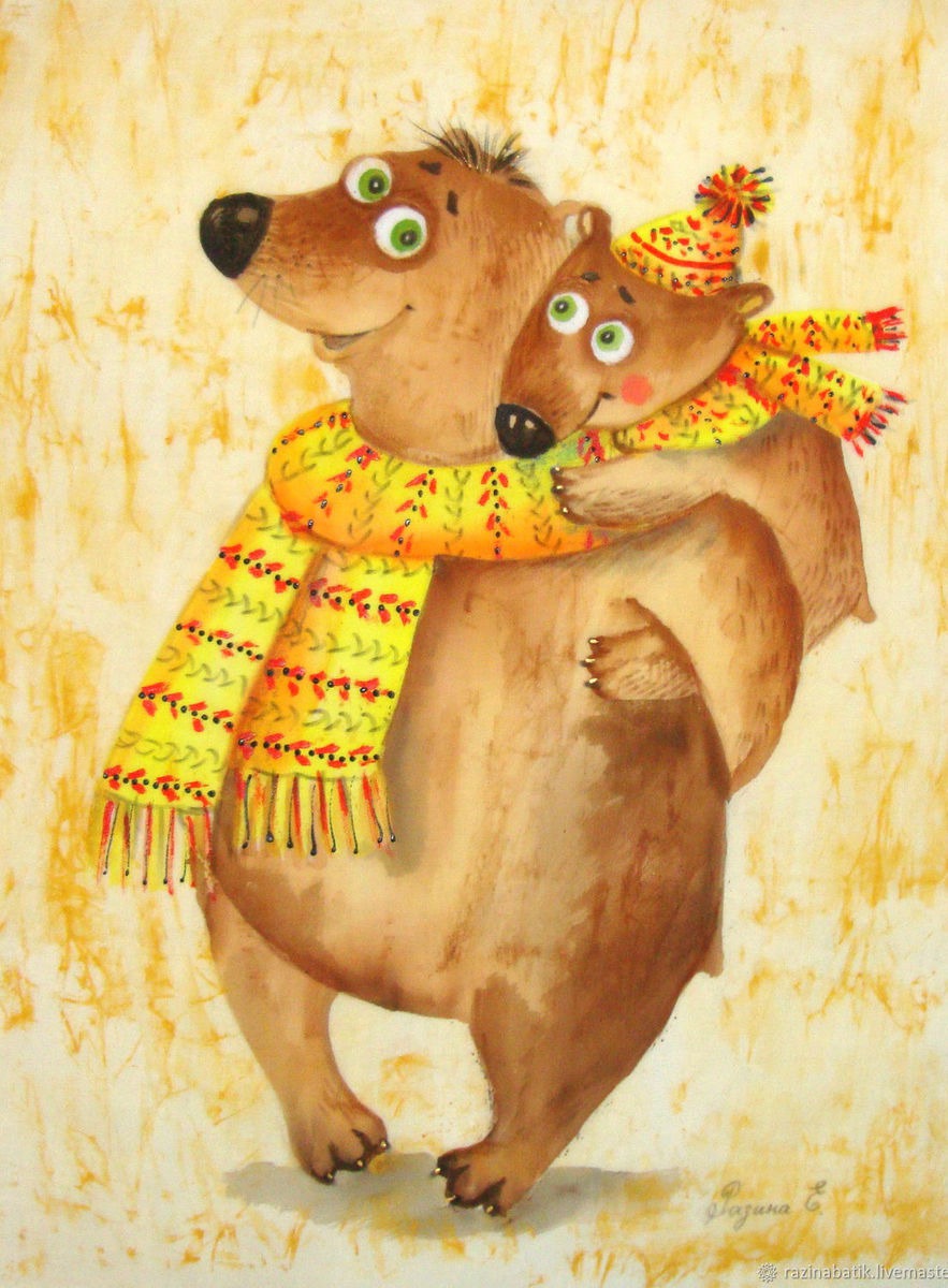 медведь, панно, коричневый, сказочный персонаж, дети, природа, детство, мама, лес, шарфик, папа, батик, сын, дочь, разина, родители