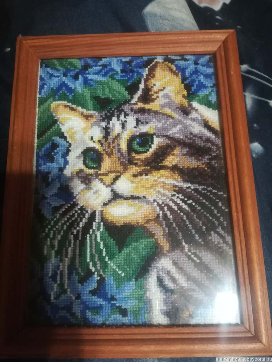 Отличная картина, вышитая техникой крест "Кошка Мурка" прекрасно впишется в Ваш интерьер.