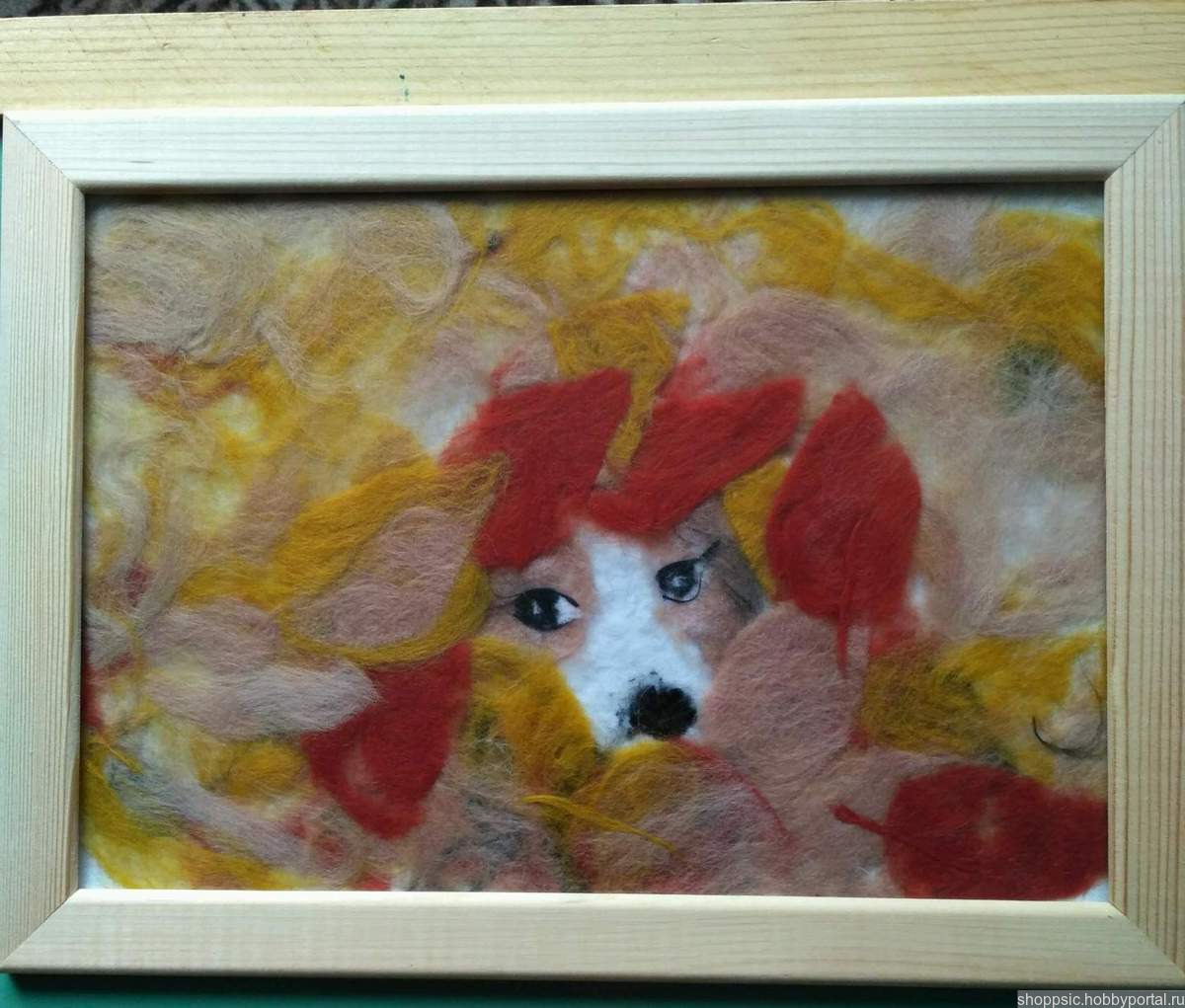 Картина выполнена шерстью, в осенних тонах. Размер картины 21*30см.
