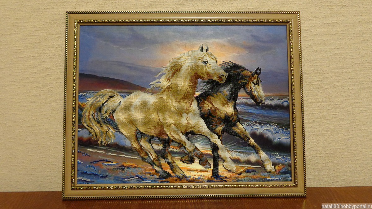 Лошадь-символ скорости и упорства. Дарует силы и выносливость, а детям быстрое развитие. Этот символ-покровитель детей и взрослых.Размер 47 х 37 Высылаю с оформлением, под стеклом и с рамой(как на фото). Напишите, какое бы Вы, хотели оформление рамки?