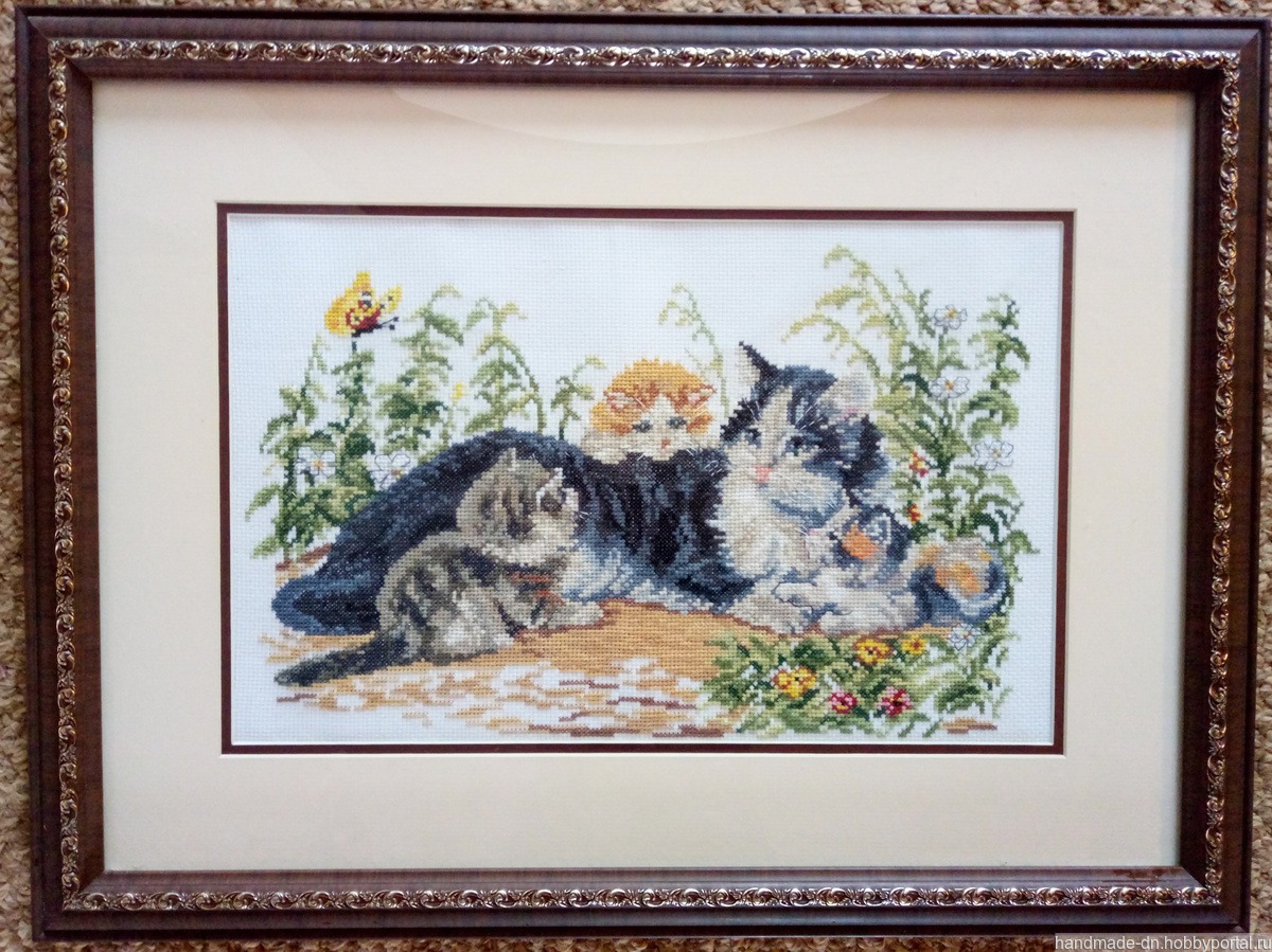 Картина вышита крестиком на канве Аида №14 нитками мулине фирмы "Гамма".Вышивка оформлена в багет со стеклом, с тыльной стороны прикреплен удобный подвес.Размер картины в рамке 40*53 см , размер вышитого полотна 24*36,5см. Картина отлично впишется в любой интерьер, подойдет в качестве замечательного подарка на любой случай.