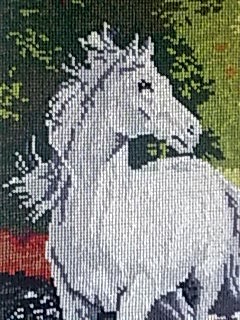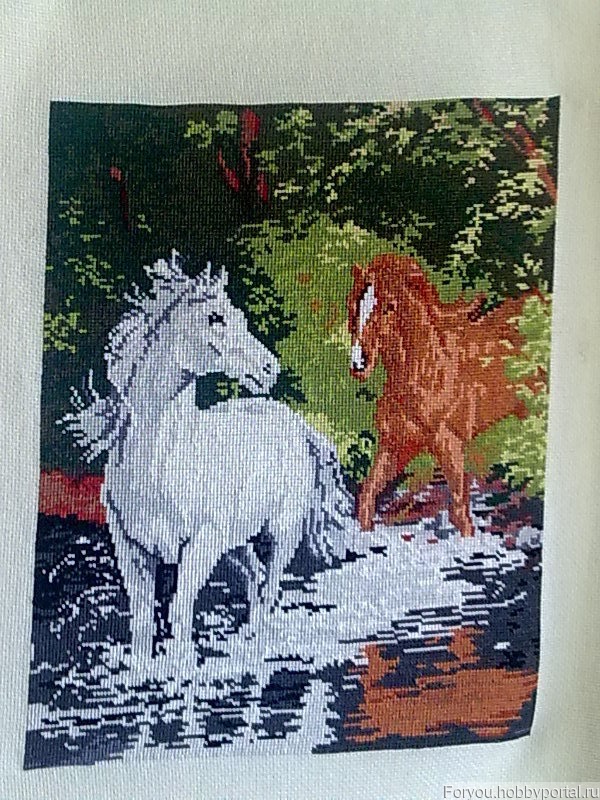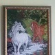 Романтичный сюжет... Ручная вышивка в технике счётный крест, 30 цветов. Лошадки - как живые! Украсит Ваш интерьер, чудесный подарок. Оформлено в багет под стекло.