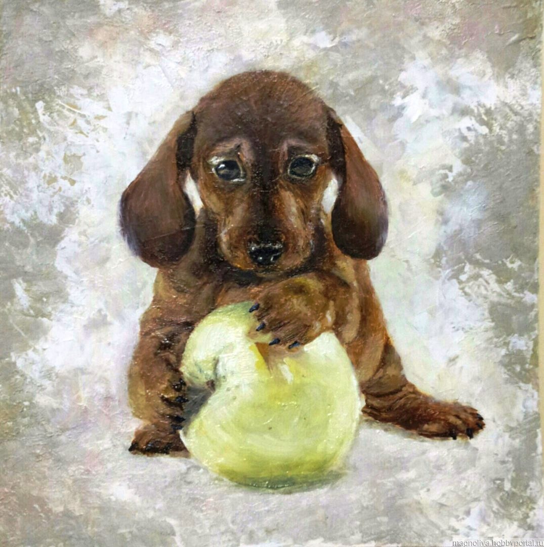 подарок на день рождения, подарок девушке, подарок, подарок на любой случай, символ года, картина для интерьера, яблоко, щенок, картина маслом, картина в детскую, символ года собака