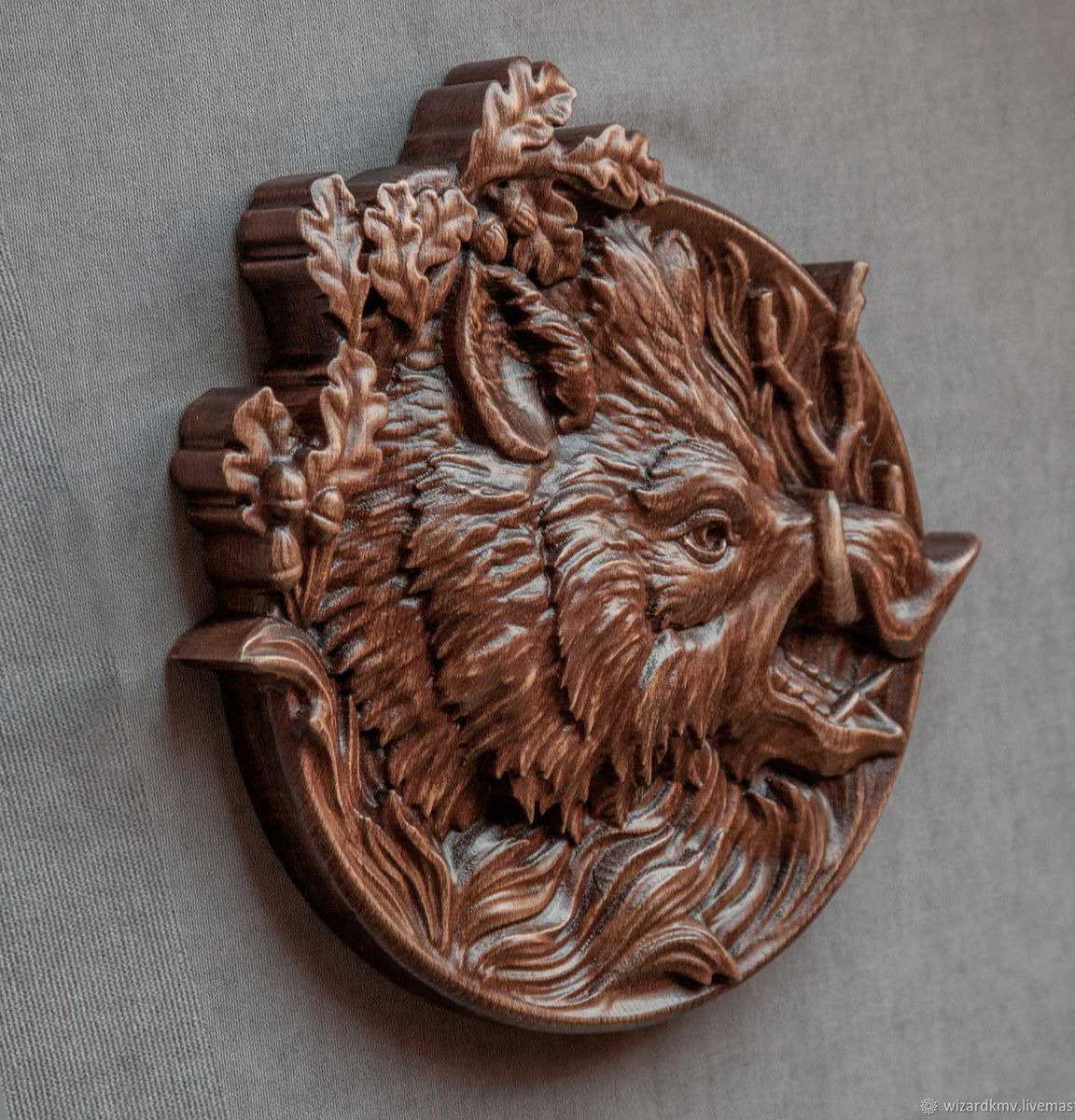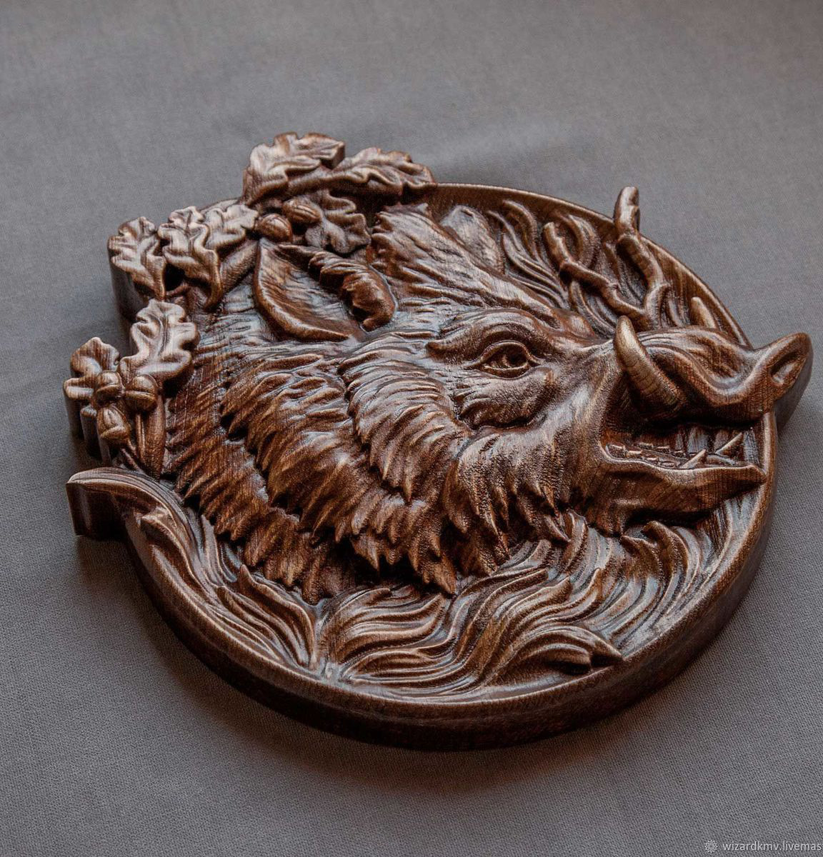 тарелка декоративная, тарелка сувенирная, кабан, Кабан барельеф из дерева на стену