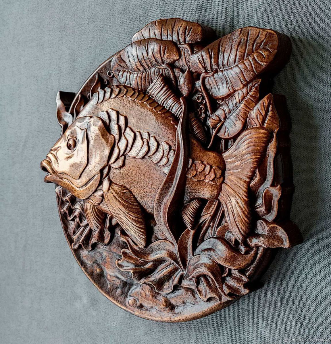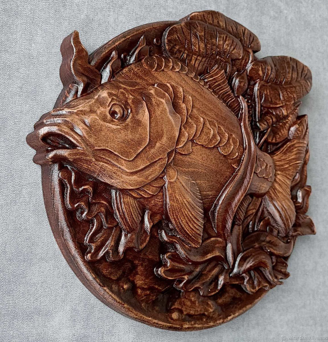 Необычная для такого размера толщина этих панно (40мм), глубина рельефа и нарочито грубоватая стилизация изображений, а так-же великолепно переданная художником фактура меха животных и перьев птиц делает эти панно неизменным объектом внимания. Хороший, стильный подарок.