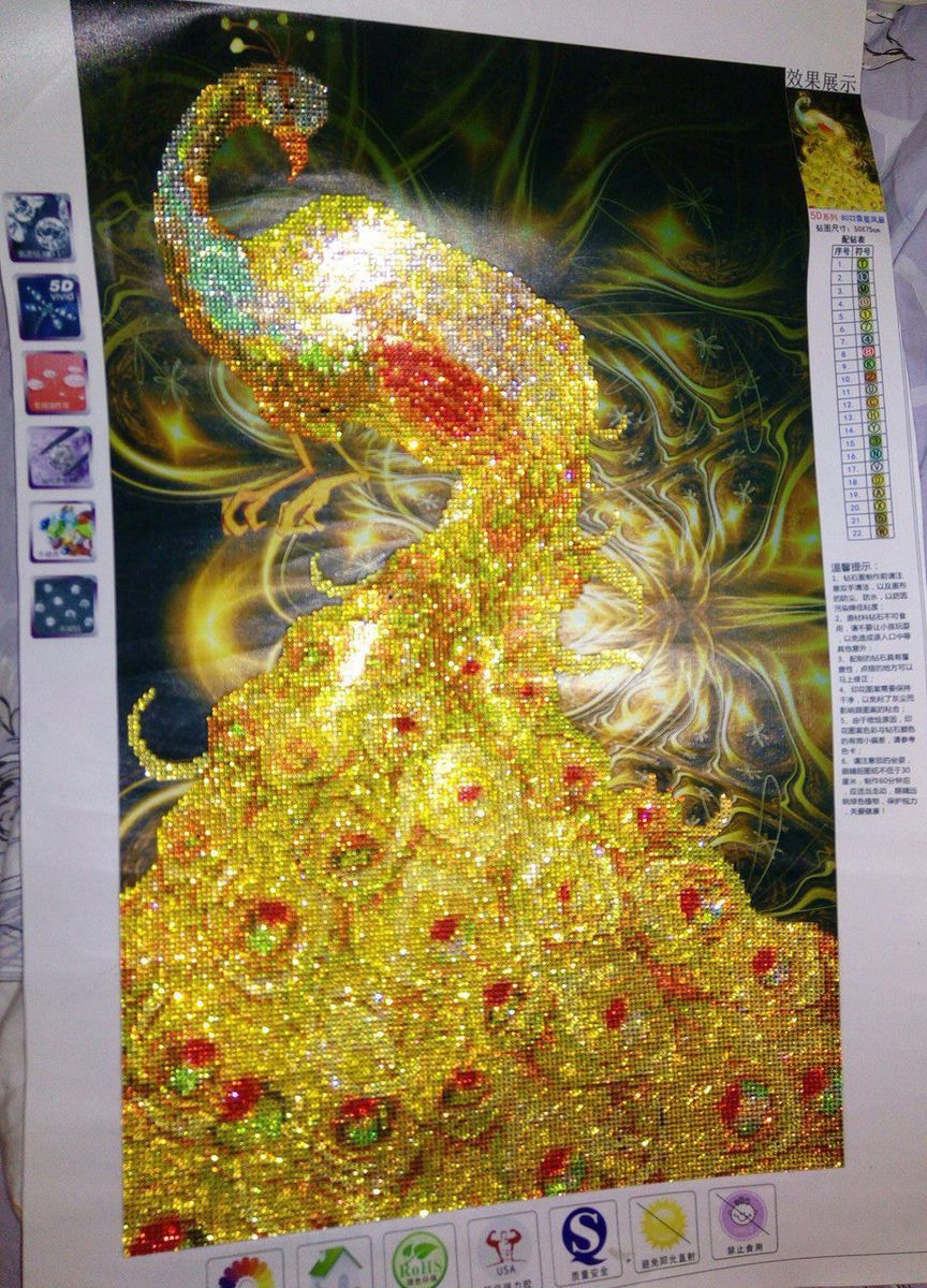 Картина выложена круглыми акриловыми стразами по полотну - основе с нанесенным 3D - изображением, схемой и клеевым слоем в технике алмазной мозаики. Стразы представляют собой небольшие камушки, круглой формы, которые имеют огранку, как у алмазов. Такая форма страз, способствует игре света на готовой картине, что делает готовые работы «живыми».